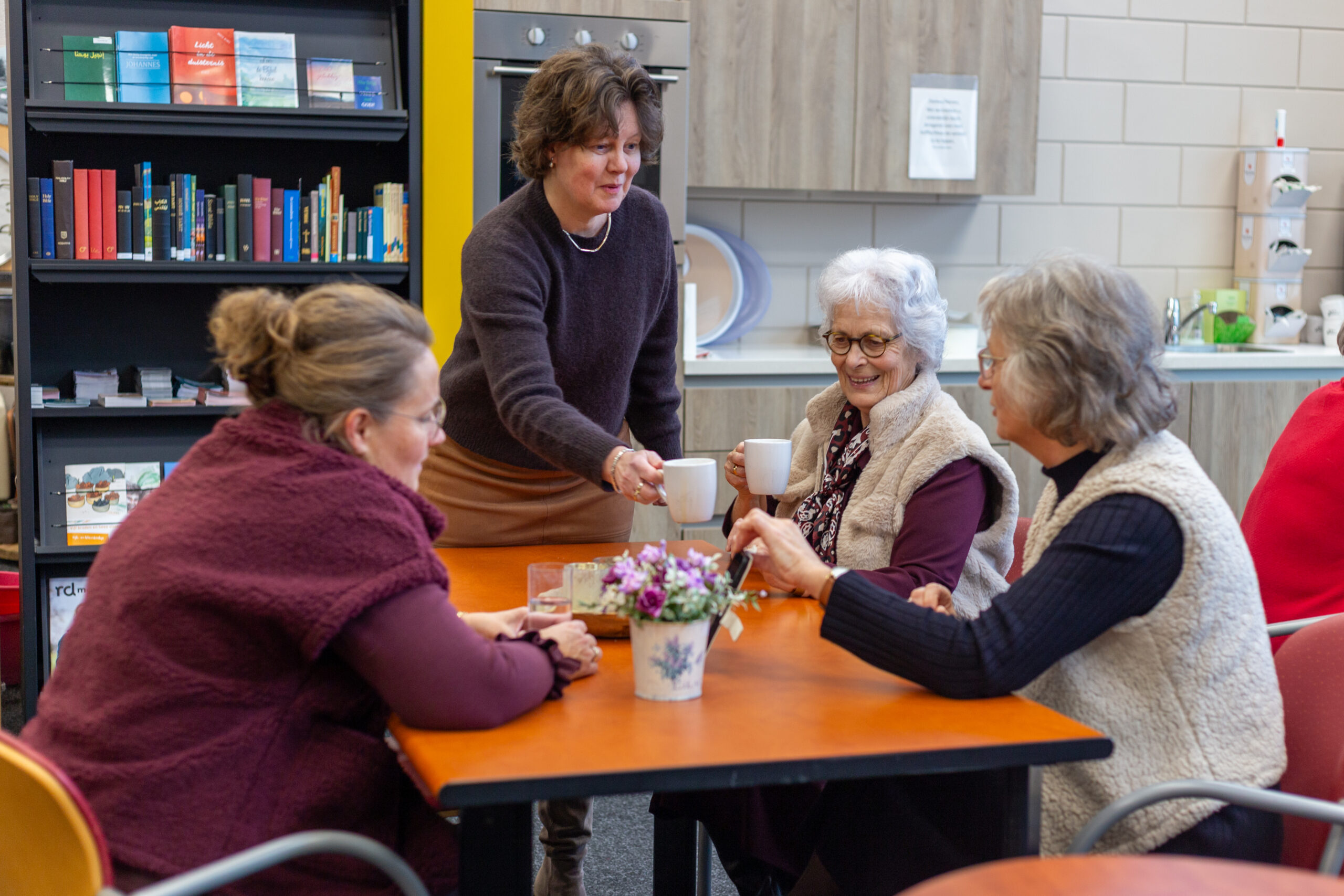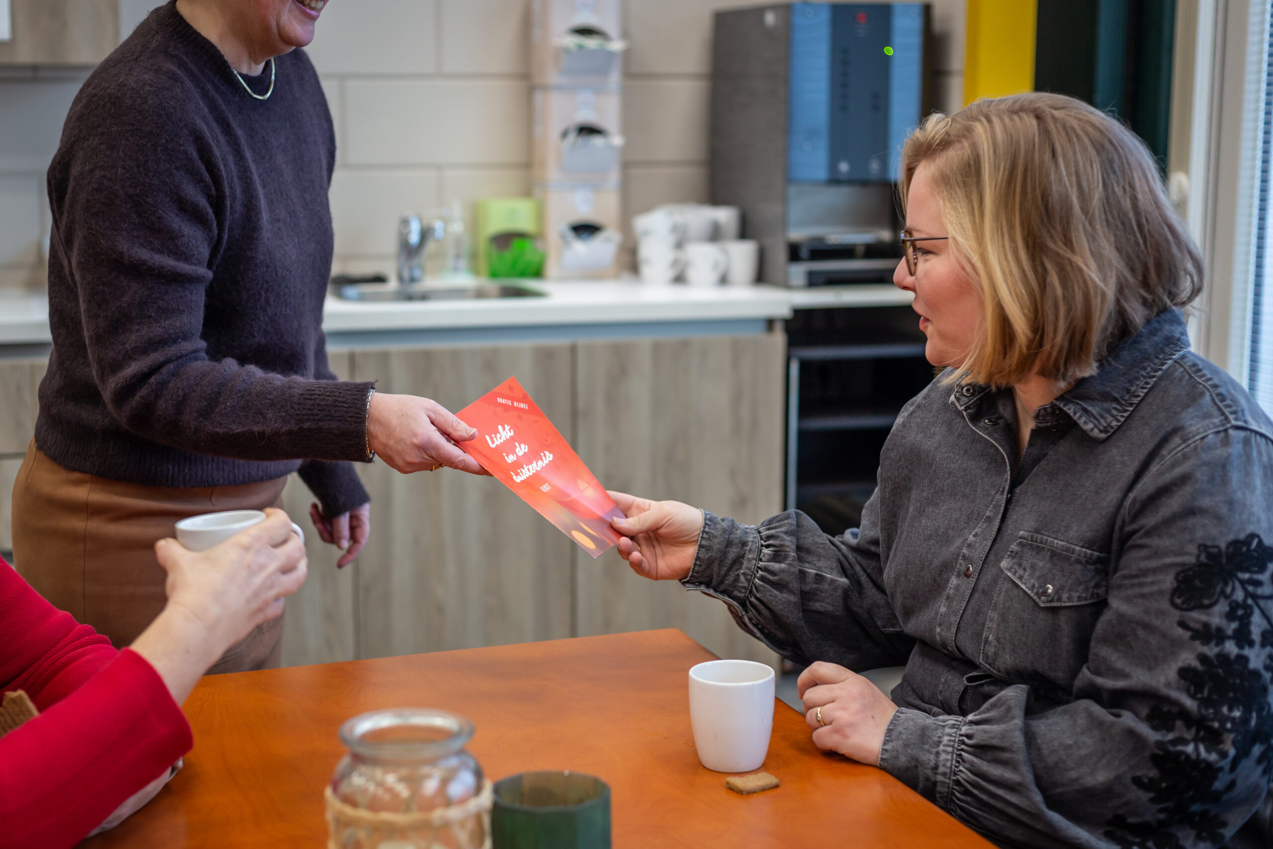 Er is ook meestal een gastvrouw of gastheer aanwezig om een gesprekje mee te voeren en eventuele (geloofs-)vragen te bespreken of eens van gedachten te wisselen.